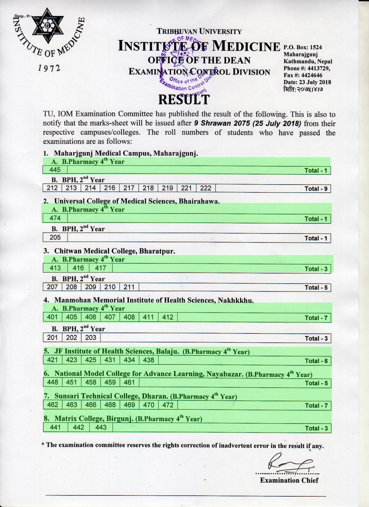 Course Interested in: B.Pharm. 4th year Result TU #Add other courses (if any):