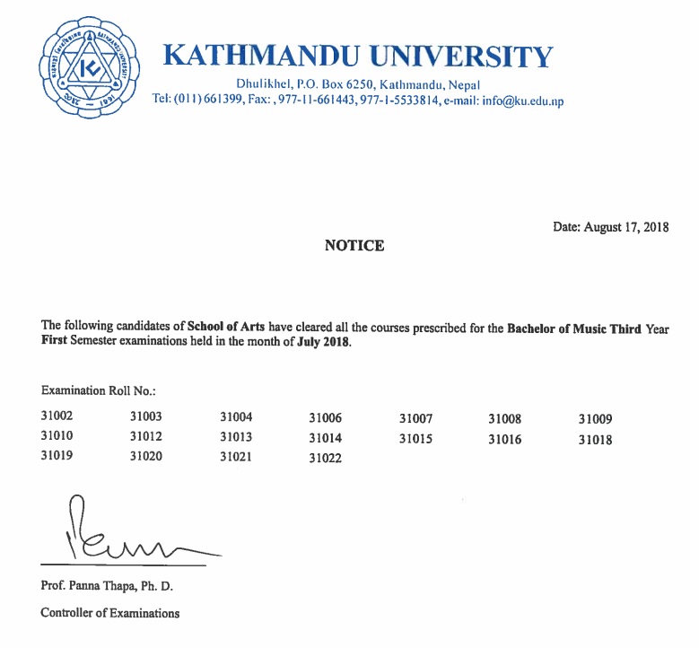 B.Music 5th Semester Result KU