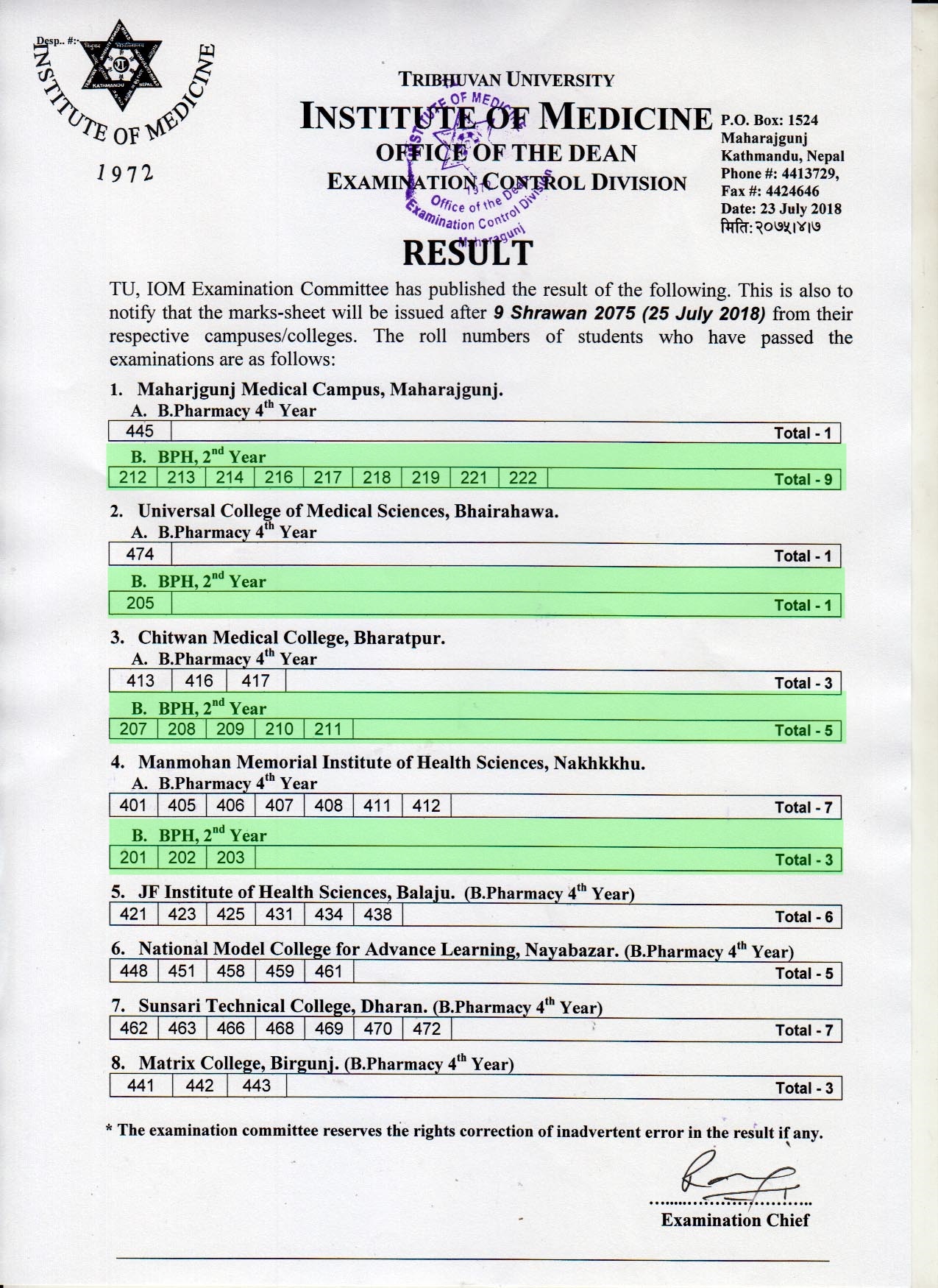BPH 2nd year Result TU